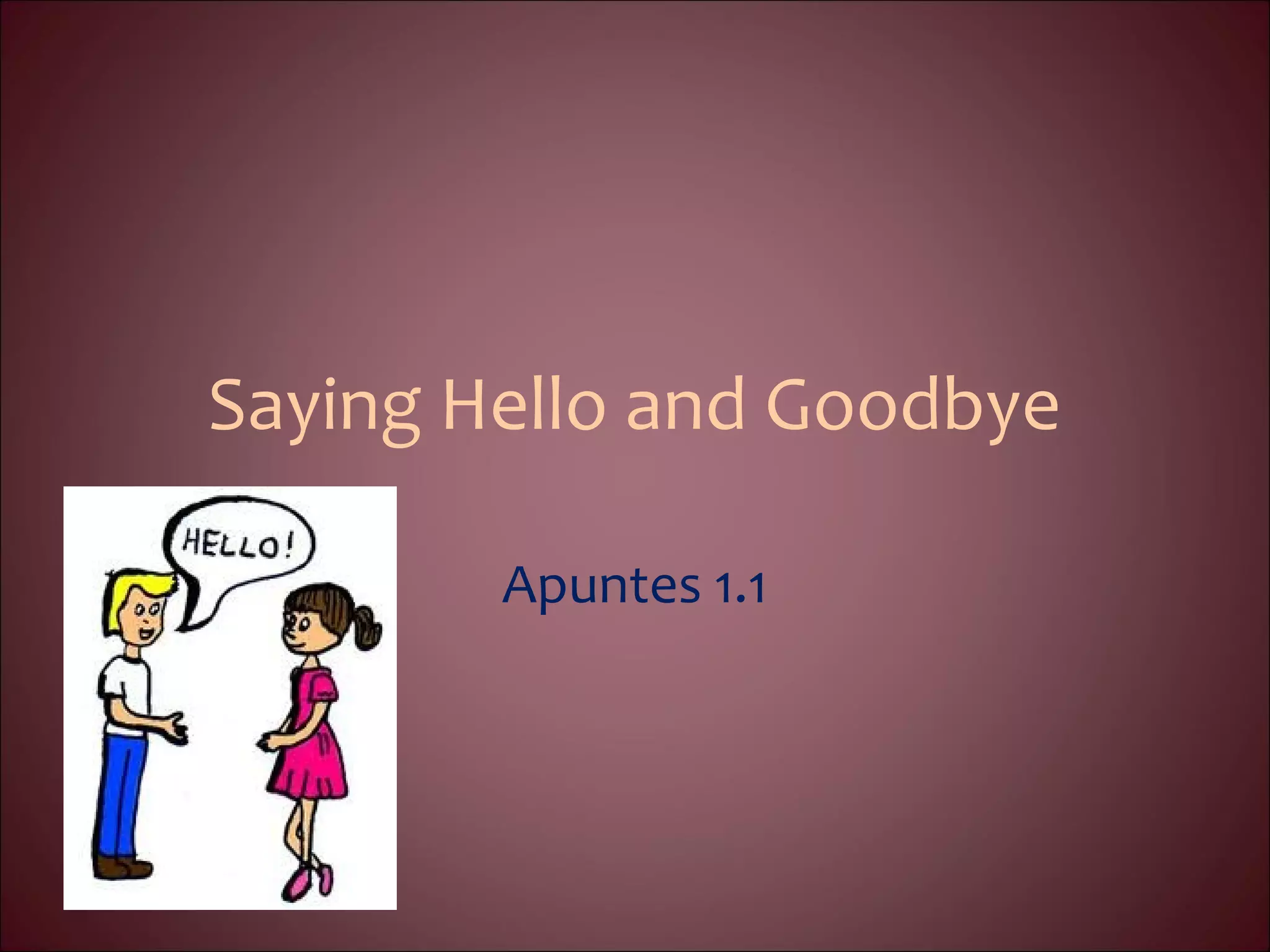 This document provides objectives and vocabulary for greeting people in Spanish and saying goodbye. It lists common greetings like "Hello," "Good morning," and their Spanish equivalents "¡Hola!" and "Buenos días." It also lists phrases for saying goodbye such as "Goodbye," "I have to go," and their Spanish translations like "Adiós" and "Tengo que irme." Additional vocabulary teaches terms for Mr., Miss, and Ma'am.