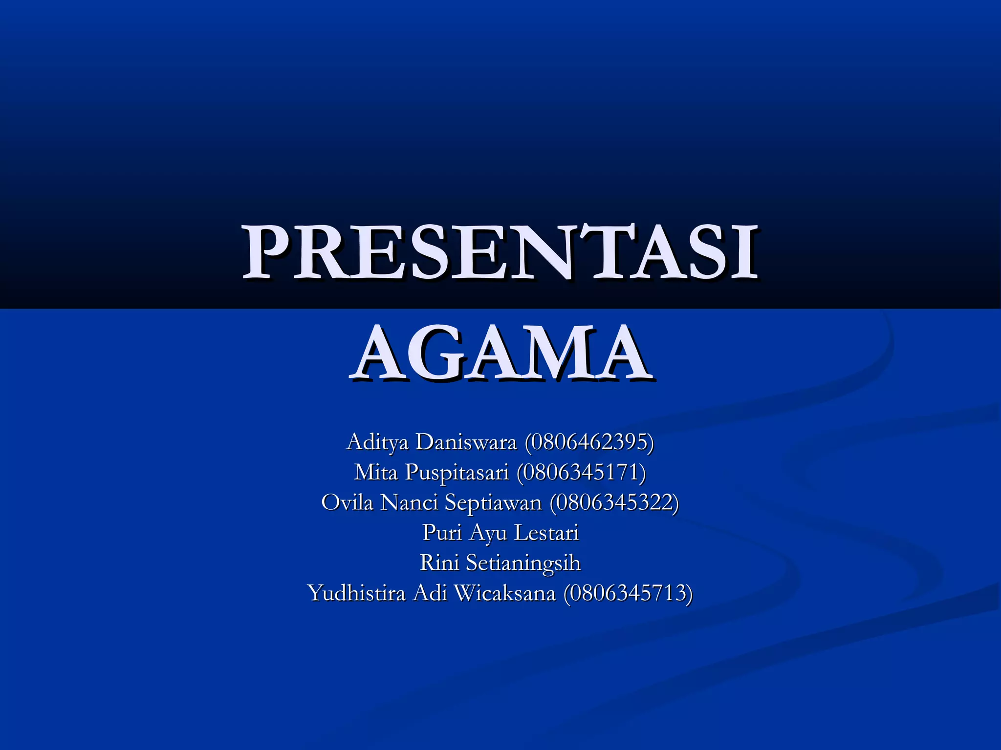 Presentasi ini membahas tentang akidah dan syariat dalam agama Islam. Akidah membahas tentang 6 rukun iman yaitu iman kepada Allah, malaikat, kitab-kitab Allah, rasul-rasul Allah, hari akhir, dan qada dan qadar. Syariat membahas tentang ibadah seperti zakat dan haji, serta muamalah seperti jual beli, sewa menyewa, waqaf, dan larangan riba."