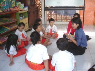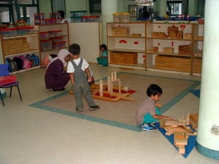Dokumen tersebut membahas tentang kurikulum PAUD yang mencakup aspek-aspek perkembangan anak, model pembelajaran sentra, dan penilaian anak usia dini. Model pembelajaran yang digunakan adalah BCCT dengan empat pijakan pembelajaran di setiap sentra.