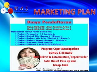 PT R.A.S, didirikan pada 1 Juni 2012 di Jakarta, bergerak dalam bisnis penjualan langsung produk emas, kesehatan, kecantikan, dan fashion dengan sistem pemasaran berbasis kebersamaan. Perusahaan berkomitmen memberikan pelayanan terbaik dan memberikan peluang usaha kepada masyarakat Indonesia, dengan potensi penghasilan yang tinggi melalui marketing plan yang mudah diikuti. PT R.A.S didukung oleh manajemen dan sumber daya manusia yang berpengalaman di dunia multi level marketing.