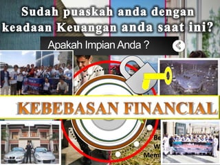 Dokumen tersebut memberikan informasi mengenai bisnis jaringan pemasaran (multi level marketing/MLM) yang menawarkan berbagai produk seperti pulsa, listrik, asuransi, serta program investasi. Bisnis ini menggunakan sistem duplikasi dimana setiap anggota akan mendapatkan bonus secara berkelanjutan apabila mereka merekrut anggota baru.