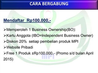 Dokumen tersebut memberikan informasi tentang skema bisnis multi level marketing perusahaan yang menawarkan berbagai paket keanggotaan untuk menjadi mitra bisnis. Skema bisnis ini menjanjikan bonus yang besarnya dipengaruhi oleh total omzet yang dihasilkan oleh jaringan mitra bisnis seseorang secara mingguan dan bulanan. Bonus utama meliputi bonus sponsor, bonus omzet sponsoring, bonus loyalitas klub, serta berbagai bonus lainnya.