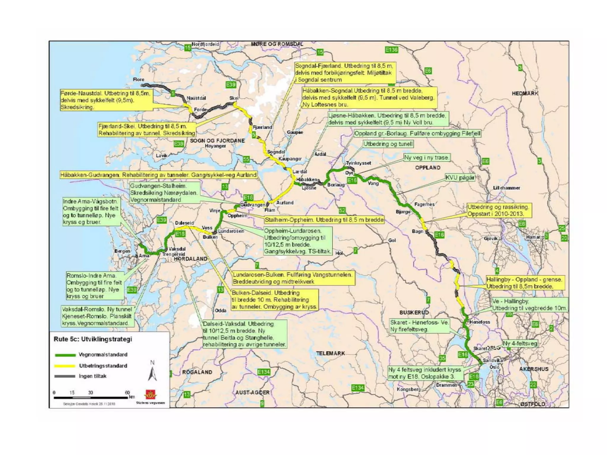 GS-veg på 20,9 km av strekninga. delar av strekn.. 170