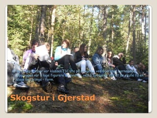 10 og 11september var klassen F1C ute på skogstur ved Gjerstad barnehage. Opplegget var å lage figurere av kvister, ved å spikke de slik at de skulle få en slags besjelings - form.Skogstur i Gjerstad