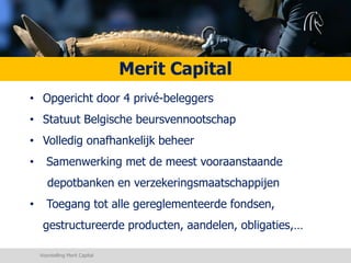Dit beheerkan discretionair of adviserend zijnThe MeritCapital InvestorMaandelijkse nieuwsbriefVaste rubriekenInteractie met de cliënten via de rubriek: vraag van de cliënt