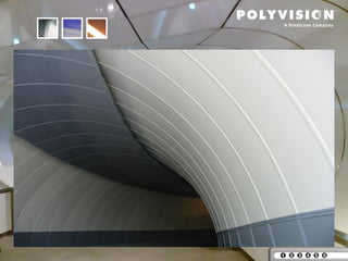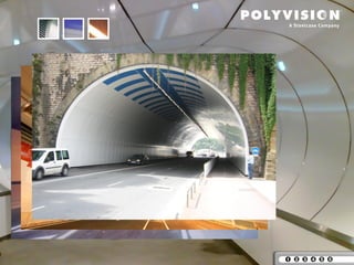 This document discusses PolyVision Ceramicsteel, a coated steel product. It describes the production process, available product types including coils, cut sheets, and made-to-size panels. It provides details on screen printing and bonding panel capacities. The document highlights the advantages of Ceramicsteel for metro and infrastructure applications, noting its durability, cleanability, graffiti resistance, and other properties that make it suitable. Application examples are given for architecture, tunnels, and metro/subway stations. Performance test results are presented demonstrating the product's weather resistance, fire resistance, and other qualities.