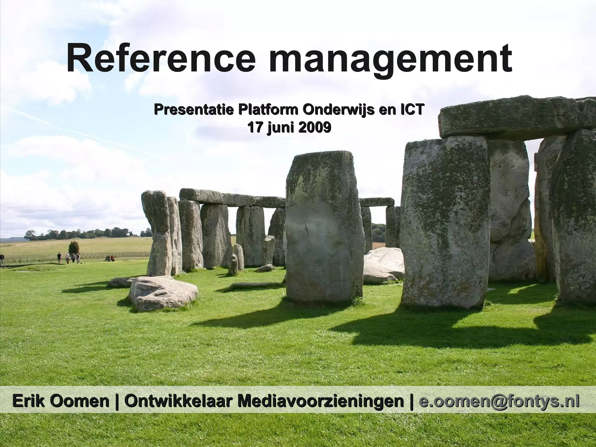 Erik Oomen |Ontwikkelaar Mediavoorzieningen | [email_address] Reference management Presentatie Platform Onderwijs en ICT 17 juni 2009
