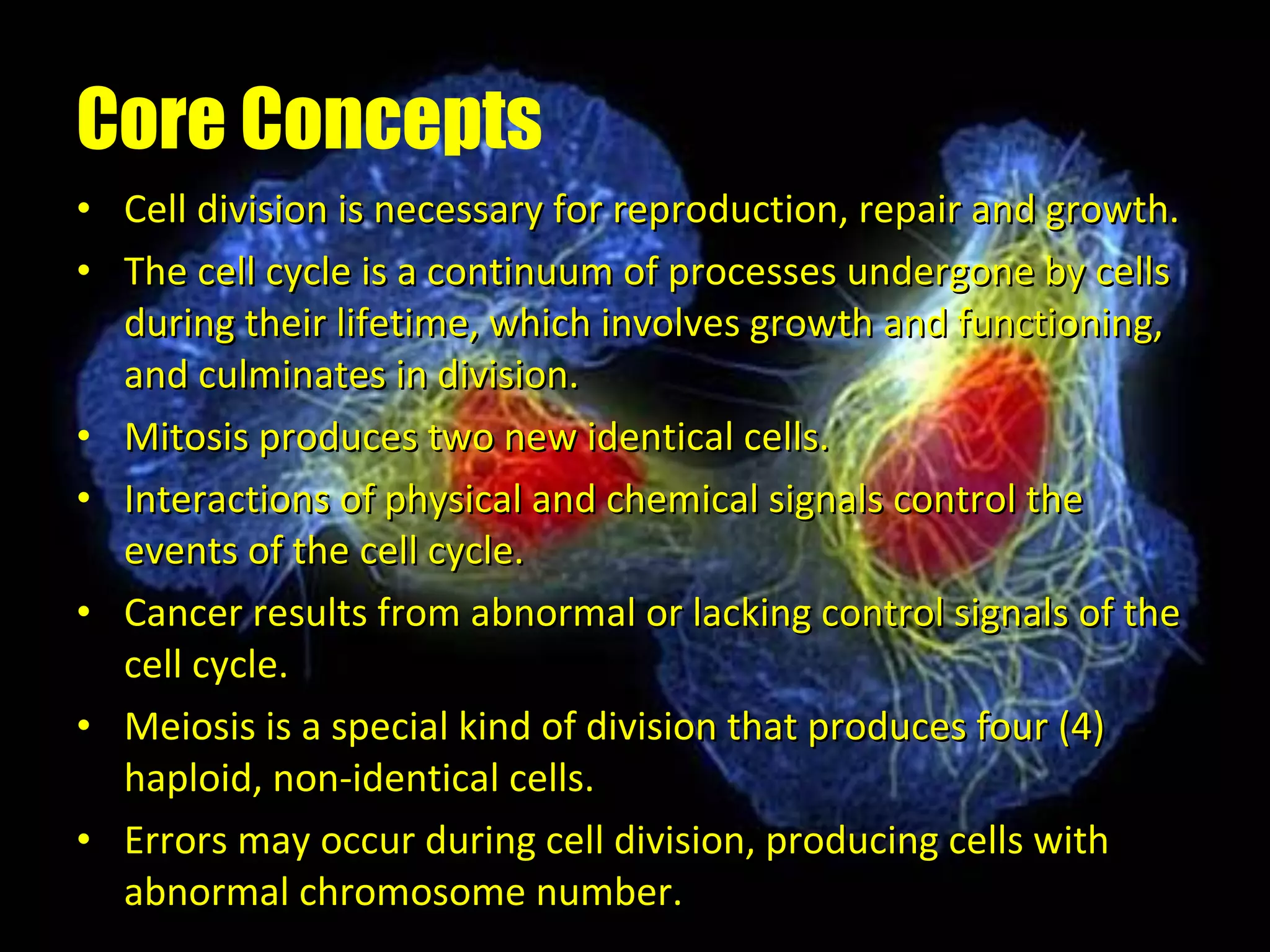 The document discusses the cell cycle, which involves growth, functioning, and division of cells. It has two main types of cell division - mitosis and meiosis. Mitosis produces two identical cells and is involved in growth and repair. Meiosis produces gametes through two divisions and involves genetic mixing through crossing over. Precise control mechanisms regulate the cell cycle, and errors can lead to genetic conditions.