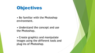 This document provides instructions for using Photoshop to add a shadow to an image. It describes selecting the person from the original photo and placing them on their own layer. It then instructs selecting an image to use for the shadow, filling it with black, and dragging it below the person's layer. The shadow is then resized, blurred with Gaussian Blur to soften edges, and opacity lowered to reduce intensity. When completed, these steps allow adding a realistic shadow behind the person in the photo.