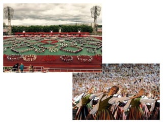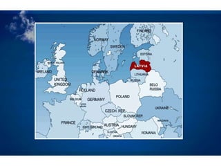 Latvia is a Baltic country with a long history and rich culture. Some of the most important symbols of Latvia's independence include the Freedom Monument in Riga and the country's flag, one of the oldest in the world. Latvia celebrates its independence day on November 18th. Latvian culture is expressed through traditional folk dresses, Midsummer festivals, song and dance celebrations, and historical sites throughout the country in cities like Riga, Jelgava, and Stāmerienas. Latvia also takes pride in preserving its natural environments and being a center for sports like hockey, basketball, and football.