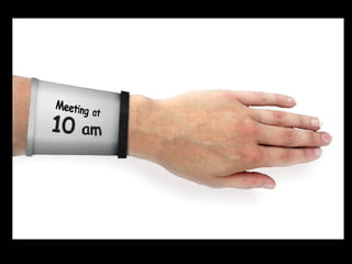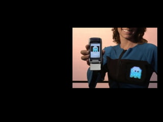 Tom and Mary are developing a design for a course project on computer supported collaborative interfaces. They discuss some initial bad ideas they had, such as a social necklace and boring coffee table. They then improve upon the ideas and propose designs for an interactive coffee table that allows users to choose and draw on topics, a magnetic bracelet that can be written on to record ideas or drawings, and a t-shirt that displays an automatic updating tag cloud from the wearer's blog reader.