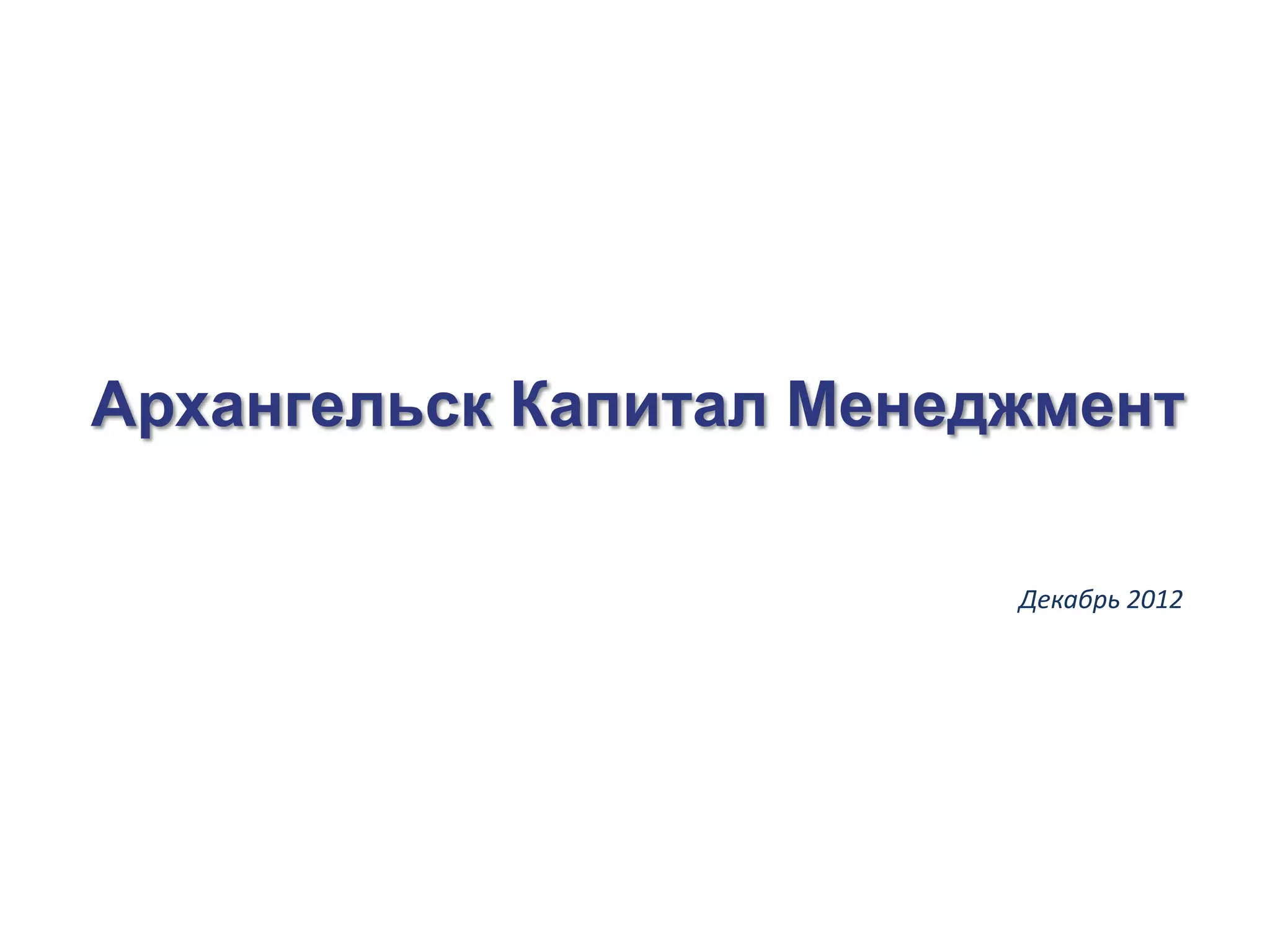 Документ представляет собой презентацию Ук 'Архангельск Капитал Менеджмент', в которой описывается компания, её инвестиционная стратегия и основные характеристики успешных проектов. Компания управляет фондом прямых инвестиций, ориентированным на малый и средний бизнес в Архангельской области, с целью достижения высокой доходности через активное участие в проектах. Инвестиции планируются в диапазоне от 3 до 15 миллионов рублей с возможностью привлечения со-инвесторов.