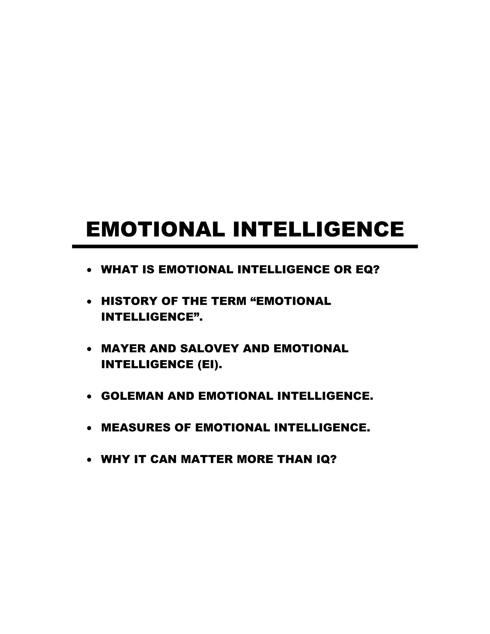 Daniel Goleman popularized the concept of emotional intelligence in his 1995 best-selling book. He adapted the work of Mayer and Salovey, who in the early 1990s proposed emotional intelligence as a new variable in personality involving the ability to perceive and understand emotions. Goleman generalized their research for a general audience and proposed emotional intelligence involves five competencies: self-awareness, self-management, social awareness, relationship management, and motivation. While popularizing the concept, Goleman's definition differed from the original and sparked debate. Measures of emotional intelligence aim to directly assess one's capacity for skills like identifying emotions in others and managing one's own emotions. Proponents argue emotional skills may be more important than