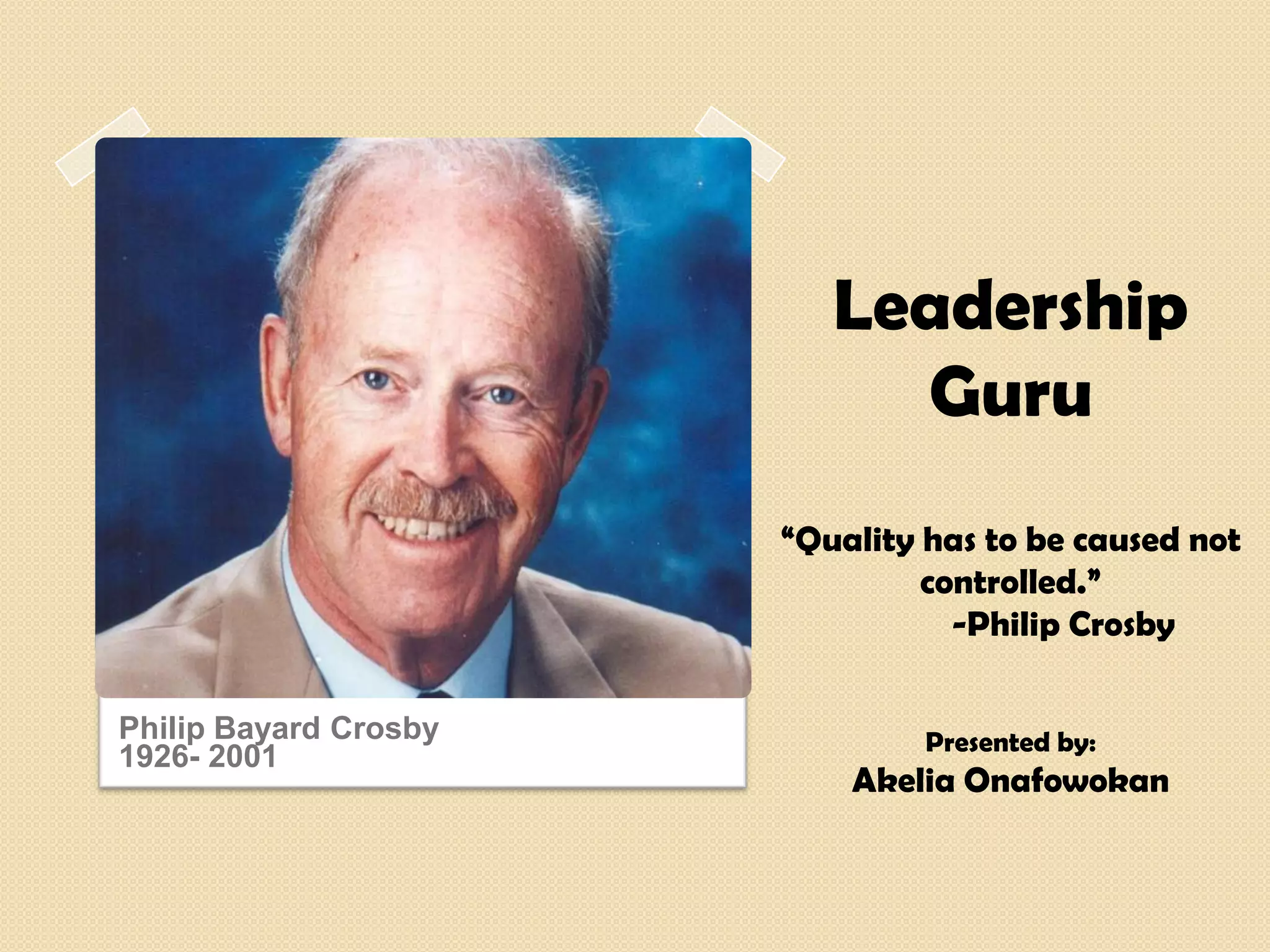 Philip Crosby was a businessman and author known for his contributions to quality management practices. He believed quality should be built into the fabric of an organization through prevention rather than appraisal of defects. Crosby developed the "four absolutes of quality management" and a 14 step process for organizations to continuously improve quality. His innovative approach aimed to achieve zero defects by ensuring processes were designed to get it right the first time.