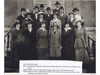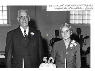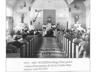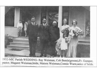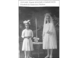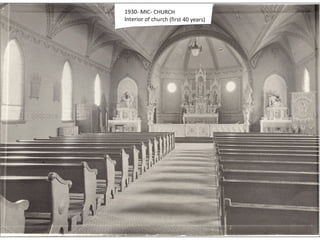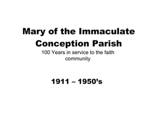 Mary of the Immaculate Conception Parish was established in 1911 to serve the local faith community. For over 40 years, from 1911 to the 1950's, the parish supported the spiritual needs of the neighborhood. This document likely provides a brief history and overview of the parish during its first 100 years in operation from 1911 until 1950.