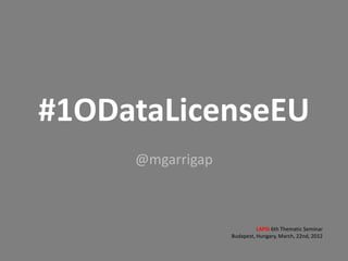 The document discusses the need for a single open data license for the European Union. It notes that over 600 people have signed a petition calling for a single EU open data license, and that the EU commissioner for digital agenda has indicated there will be a public consultation on licensing guidelines. The document aims to raise awareness of and support for the idea of a single EU open data license.