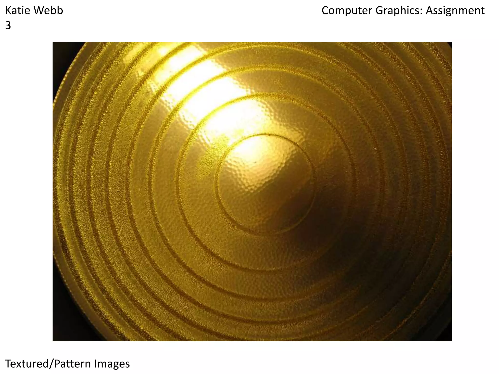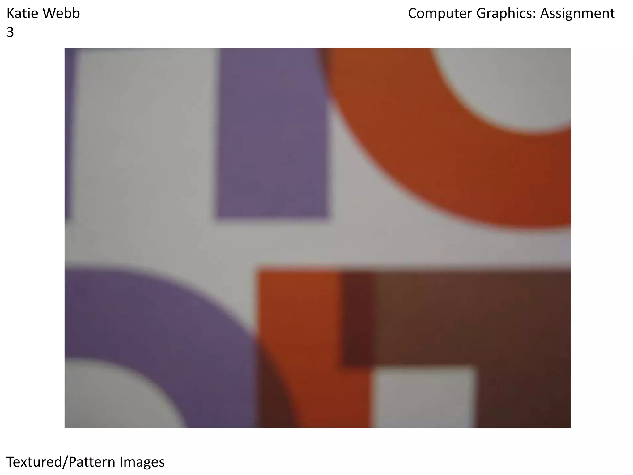 The document appears to be a student assignment submitted by Katie Webb. It contains 27 image URLs for "Foreground Images" that were collected for a "Computer Graphics" assignment. The images linked to include various landscapes, architecture, and nature scenes.