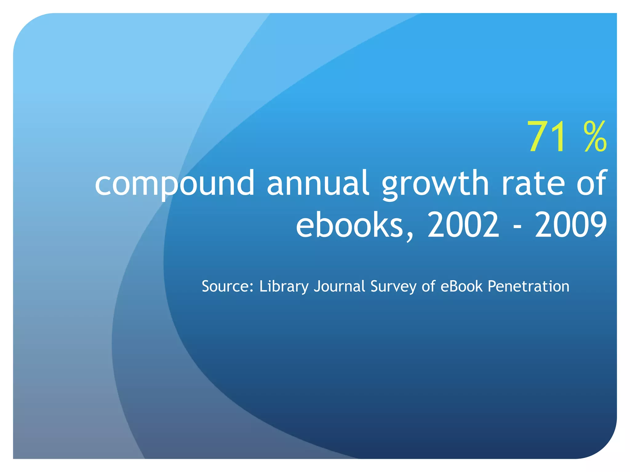 This document discusses lending e-book readers in libraries. It provides statistics on the growth of e-book usage and ownership of e-readers. It also discusses the various e-reader devices, e-book formats and issues around digital rights management (DRM). The document outlines considerations for establishing an e-reader lending program, including selecting devices, budgeting, purchasing content and dealing with legal issues. It provides examples of e-reader program models and looks at the future of e-books and potential impacts on libraries.
