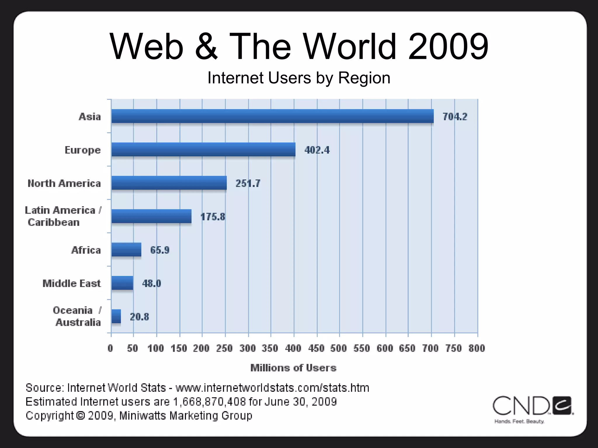 The document provides statistics on internet usage and growth of social media platforms in 2009. It shows that the top 10 countries by number of internet users, with the United States having the highest number of users. It also outlines that Twitter saw significant growth between 2008 and 2009, with its worldwide audience growing 19% and its non-US audience reaching 55% of total users. Twitter's total audience was estimated to be even larger than its website traffic numbers suggested, since many users accessed it through applications instead of the website.