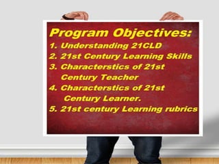 The document discusses the importance of 21st century learning design (21CLD) for educators to prepare students for success in a rapidly changing global economy. It emphasizes the need for students to master core subjects, interdisciplinary themes, and essential skills such as innovation, critical thinking, and collaboration, alongside life and career skills. Guidance on implementing 21CLD is provided, highlighting the role of technology and professional development for teachers and school leaders.