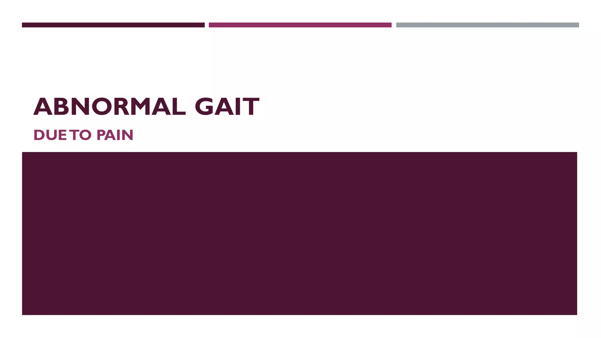 This document discusses different types of abnormal gaits caused by pain, including antalgic, gonalgic, and podalgic gaits. It focuses on antalgic gait, describing it as a compensatory walking pattern adopted to reduce pain in the lower limb or pelvis by avoiding bearing weight on the affected side. Key features of antalgic gait include shortened stance phase and enhanced swing phase on the painful side. Causes can be traumatic injuries or non-traumatic processes, and treatment involves using a cane on the opposite side. Psoatic and diplegic gaits caused by specific muscle weaknesses or injuries are also summarized.
