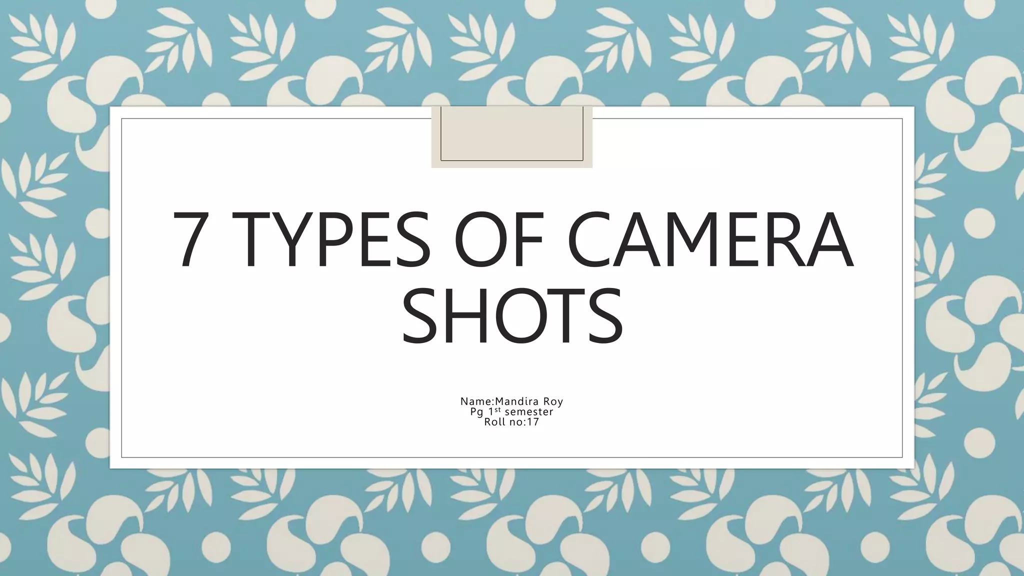 This document defines and describes 7 different types of camera shots: extreme long shot, long shot, mid long shot, mid shot, mid close up shot, close up shot, and extreme close up shot. Each shot is defined by how far or close the camera is to the subject and what part of the subject is visible. The shots range from showing a wide area and surroundings from a distance to focusing very closely on details of a subject.