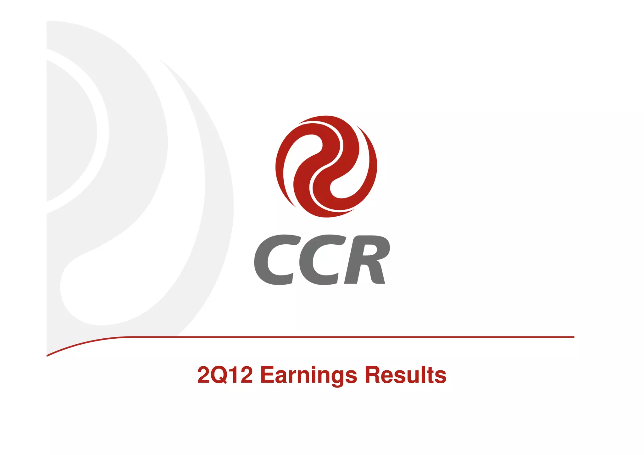The document summarizes CCR's 2Q12 earnings results. Key highlights include an 11% increase in net revenues compared to 2Q11, a 13.4% increase in EBITDA with margins up 1.3 percentage points, and a 37.7% increase in net income. Traffic increased by 1.4% while electronic toll collections reached 67.4% of revenues. EBITDA margins expanded due to increased cash generation and cost reductions, including lower concession fees, personnel costs, and maintenance provisions.