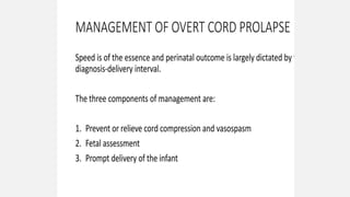 • Umbilical cord prolapse and cord