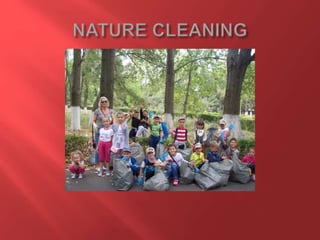 This document discusses making the world more green and clean. It was created by a Romanian school for a presentation about an EU-funded project. The document states that the views in it reflect only the author and not the European Commission.