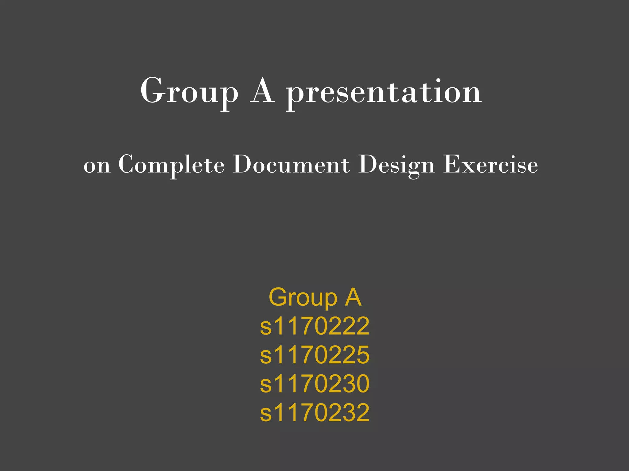 Group A presented on complete document design for their agriculture business. They discussed growing fruits and vegetables locally and efficiently to keep costs down. Their documents specify business objectives, prevent hasty decisions, and describe excellent products to inform customers. The documents logically arrange objectives, goals, and roles to guide the business towards increasing students' health and vegetable consumption in the local area.