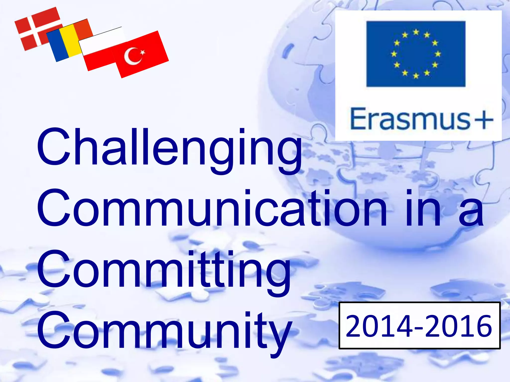 This document outlines a multi-year project between schools in four European countries to give students intercultural competencies and strengthen their feeling of European identity. The project aims to develop students' communication skills, make friends across borders, improve language abilities, and inspire teachers to use technology for collaboration. Students will work in international teams on annual themes like invention, freedom, democracy, and cultural expression.