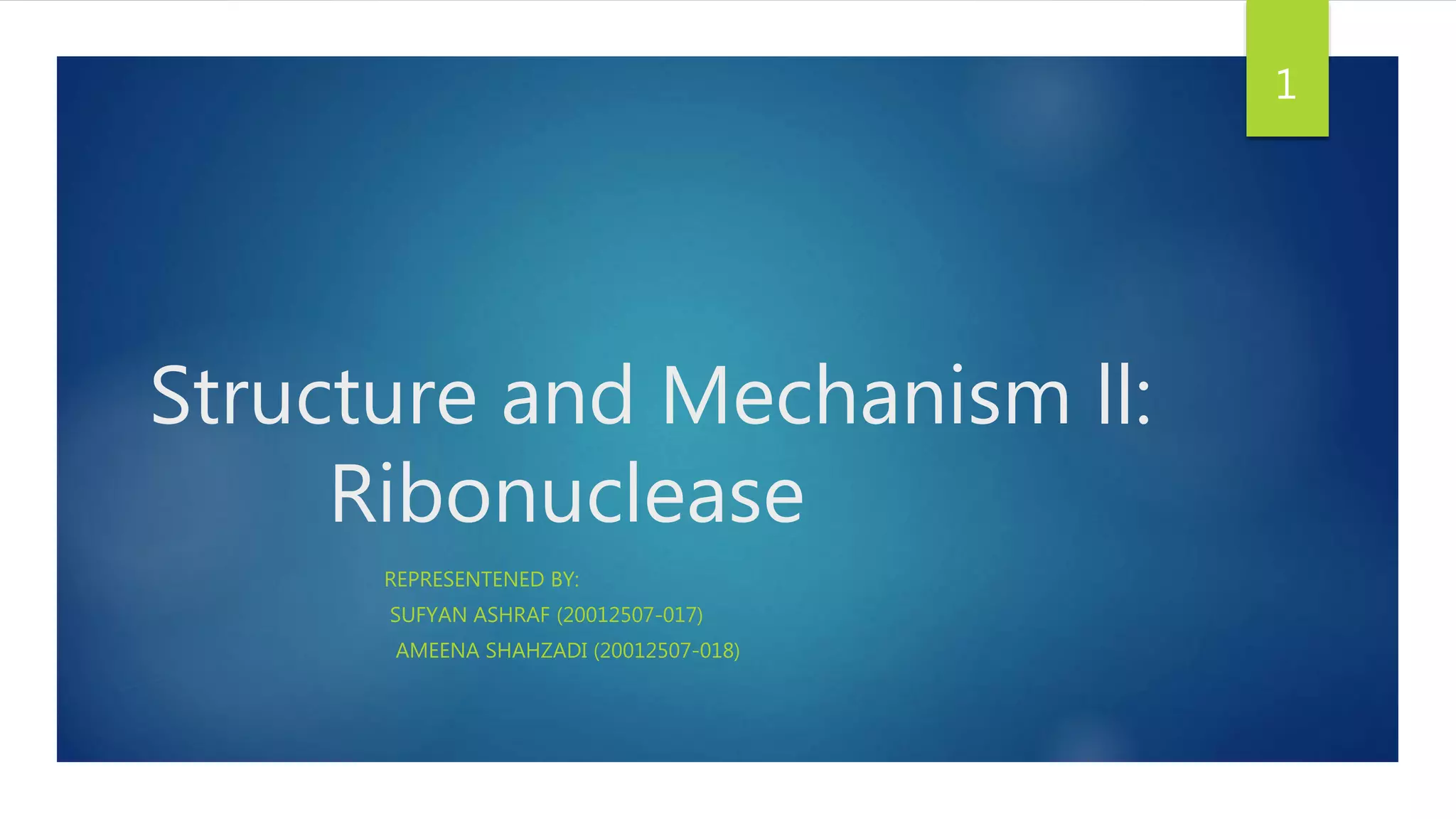 Ribonuclease A (RNase A) is an enzyme that catalyzes the degradation of RNA. It does so through acid-base catalysis using histidine residues to cleave phosphodiester bonds in RNA. RNase A has been extensively studied due to its small size and stability, yielding insights into protein structure and folding. It specifically binds and degrades RNA, with substrate binding involving interactions between RNA bases and enzymatic subsites in RNase A.