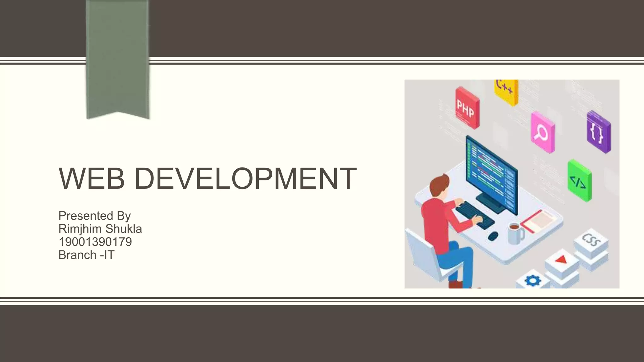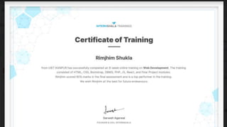 This document summarizes an 8-week online training in web development from Internshala that took place from May 14th to July 14th. It covered topics like front-end development using HTML, CSS, and Bootstrap, back-end development using SQL and PHP, and the trainee's final project of building a Spotify clone using HTML, CSS, and JavaScript. The trainee concluded that the training provided valuable technical skills and personal benefits, and that web development is a field with growing job opportunities.