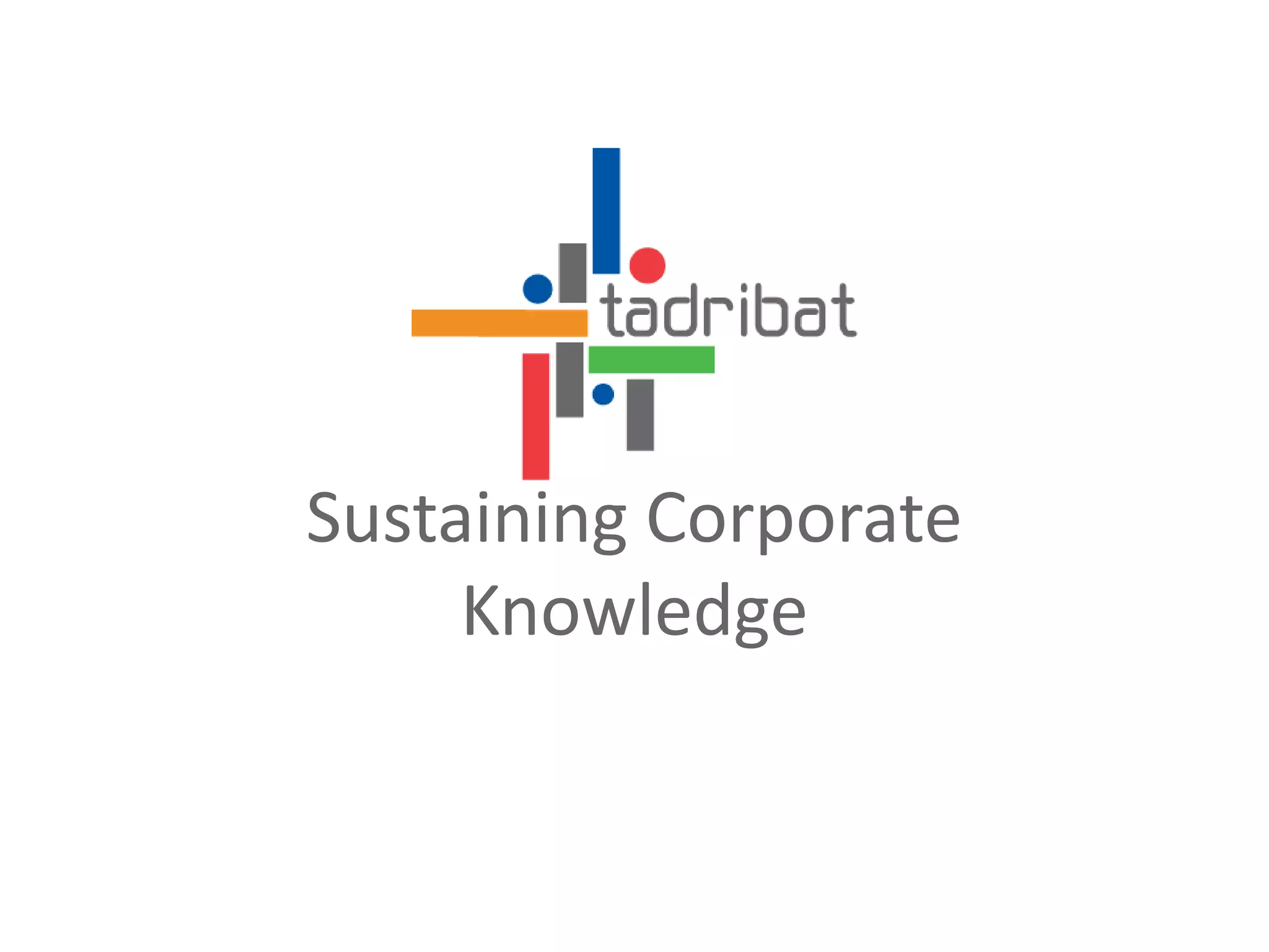 The document discusses sustaining corporate knowledge through implementing an interactive digital learning platform that allows companies to develop customized on-demand training content, reduce training costs, and ensure knowledge is documented and can be easily shared and reused across the organization over time. The proposed solution involves working with clients to install the learning system, develop courses, and provide long-term support to update content and monitor usage.