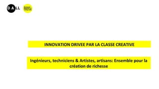 Le document propose la mise en place d'un living lab en Tunisie, le Digiart Living Lab, visant à promouvoir l'innovation collaborative entre artistes, ingénieurs et techniciens pour répondre aux besoins sociétaux. Il souligne l'importance de la co-création de produits et services innovants à travers l'interaction entre différents secteurs, tout en développant l'esprit d'entrepreneuriat collaboratif. L'objectif est d'intégrer les usagers dans le processus d'innovation pour mieux les rapprocher de leurs cibles dans divers domaines.