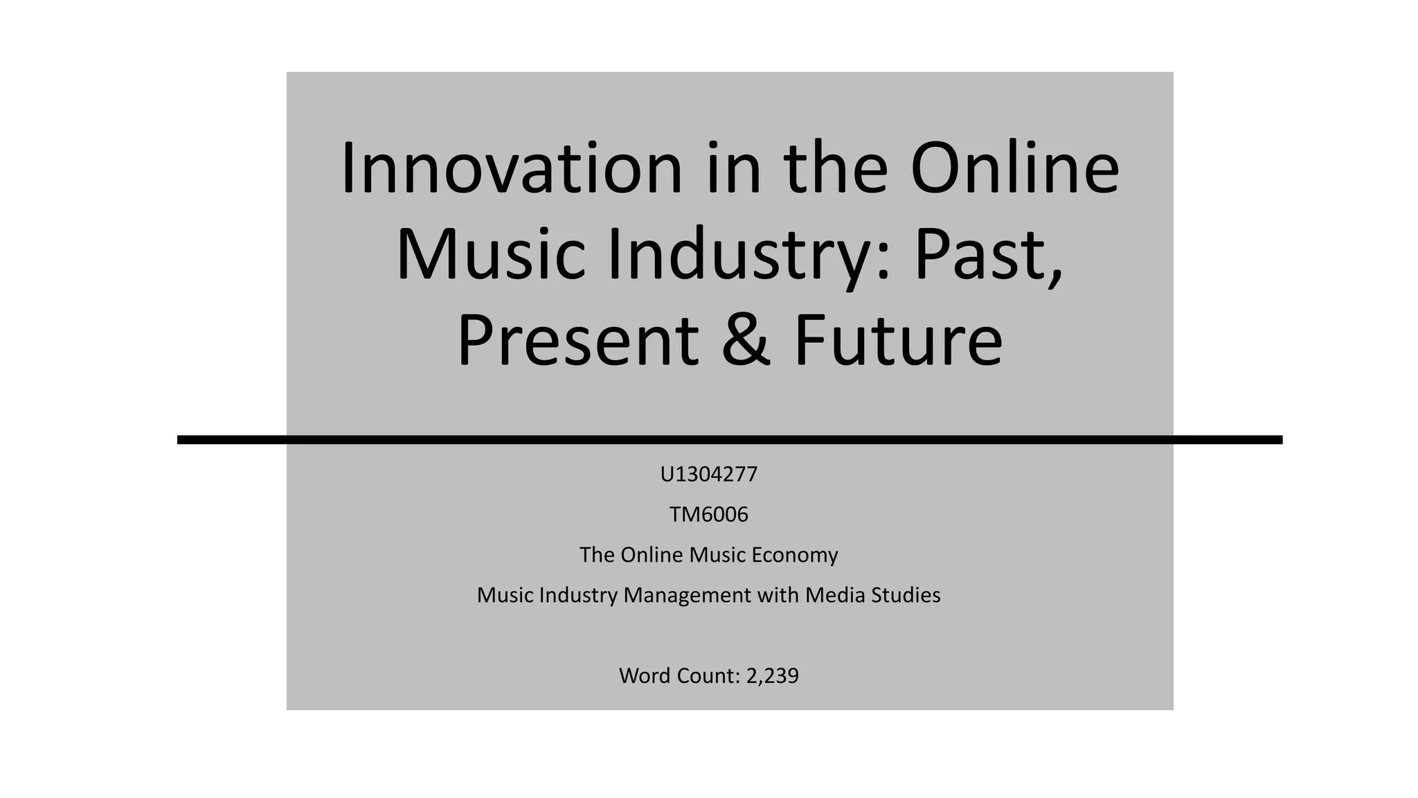 The document provides an overview of innovation in the online music industry from the past to present and future. It discusses how the rise of the internet and file sharing services in the 2000s disrupted the industry but led to fundamental changes, including new models of digital music distribution, streaming services, and social media integration. The success of companies like Apple, Google, Facebook and Amazon in monetizing online music is contrasted with the struggles of Spotify to become profitable. Innovation is argued to be important for responding to trends, developing unique selling points, and adapting existing ideas to survive in the rapidly changing industry landscape.