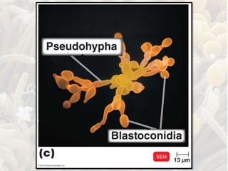 1. The document discusses microbiology topics including fungi, yeasts, algae, lichens, and protozoa. It describes their structures, life cycles, and importance.