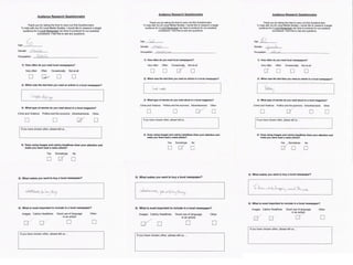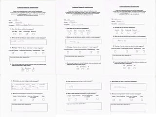The document summarizes the results of a questionnaire about readers' preferences for local newspapers. The questionnaire asked about readers' ages, views on local newspapers, and what content they find most important. The results showed that most readers enjoy crime/violence stories, advertisements, and images. Catchy headlines and good writing are also important to attract and engage readers. The findings support uses and gratifications theory that readers use newspapers to be informed and entertained.