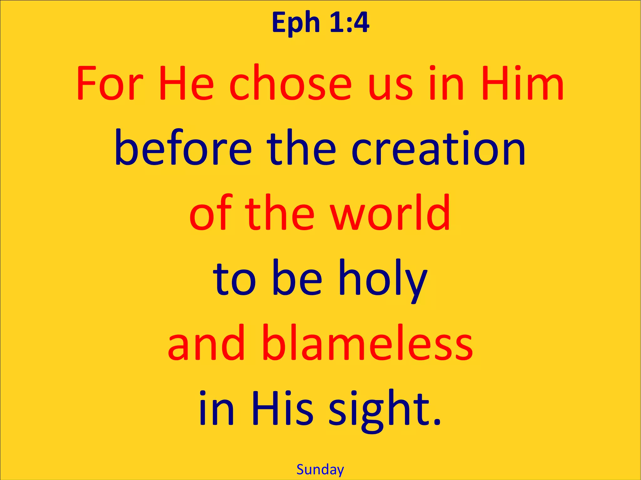 God chose believers before creation to be holy and blameless. He knows our needs before we ask. It is better to have little with righteousness than great wealth unjustly. The mouth of the righteous speaks wisdom and justice. We should turn from evil, do good, seek and pursue peace. God loved the world so much that he gave his Son so that all who believe in him will have eternal life. If anyone is in Christ, they are a new creation.