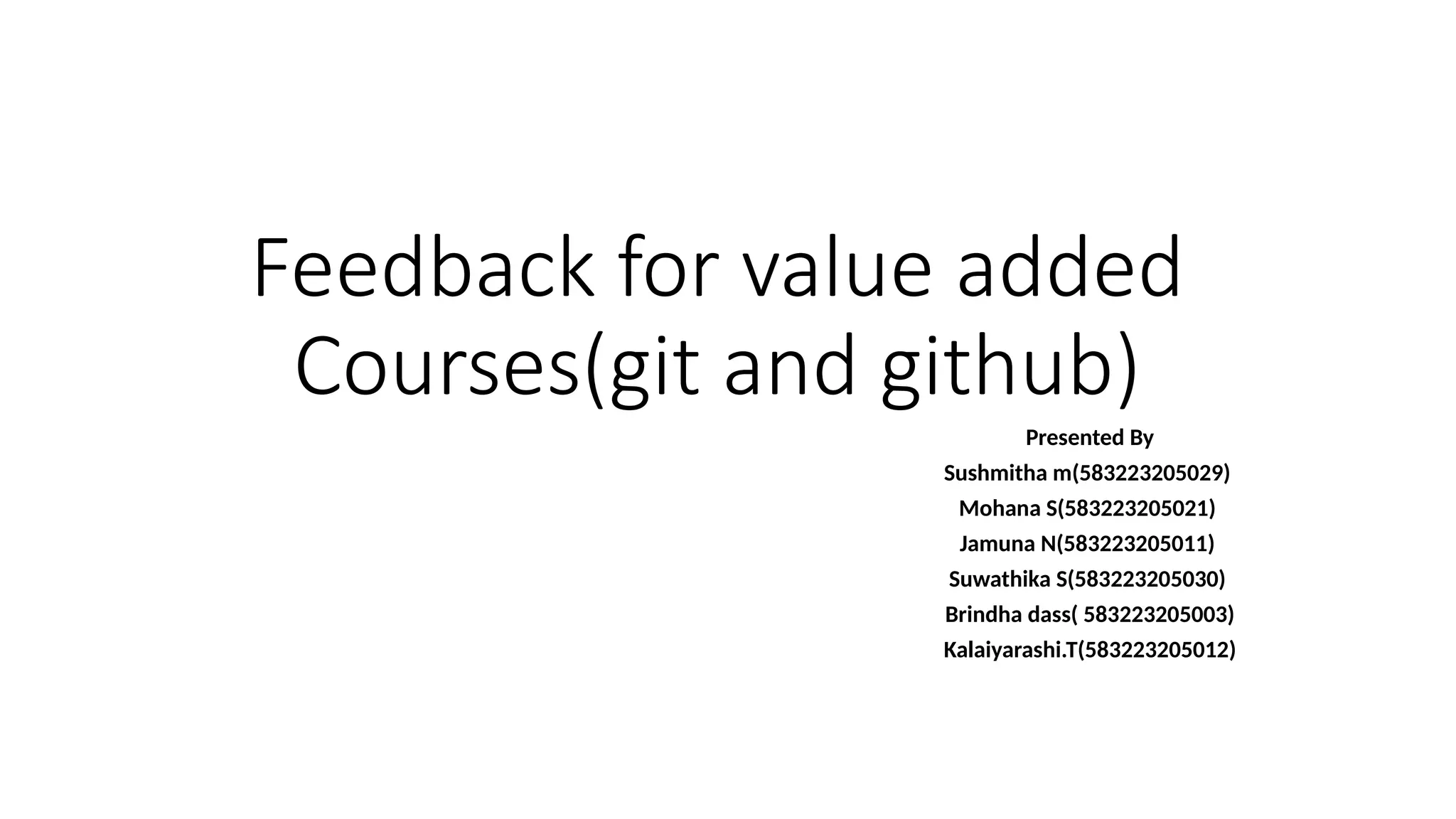 The document provides feedback on value-added courses about Git and GitHub conducted by various presenters. The sessions covered topics such as the importance of Git and GitHub, version control systems, and practical commands for using these tools. Additionally, a signing ceremony for a memorandum of understanding with Gateway Software Solutions in Coimbatore was mentioned.
