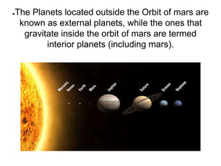 The four outer planets - Jupiter, Saturn, Uranus, and Neptune - are known as the external or gas giant planets. They are the largest planets in the solar system and are divided into two groups: gas giants like Jupiter and Saturn that are primarily composed of gaseous materials, and ice giants like Uranus and Neptune that have higher proportions of ice and rock in their compositions compared to the gas giants.