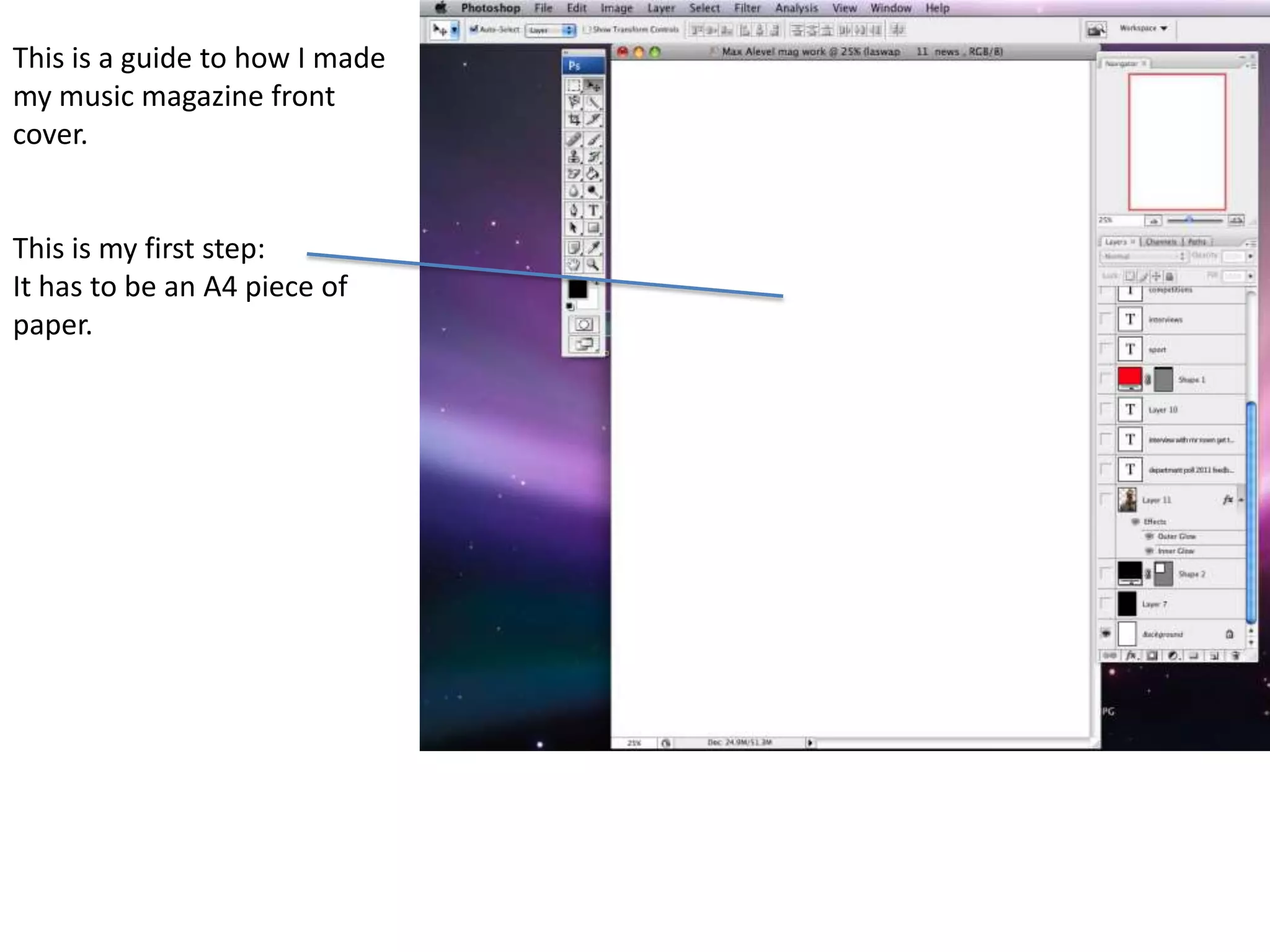 This document outlines the steps to create a magazine front cover in an art program. It describes: 1) Using an A4 piece of paper and choosing a background color to match the color scheme. 2) Placing the image on the bottom layer and adding a red outer glow effect. 3) Adding two cover lines in a chosen font and ensuring the colors fit with the design. 4) Including a strap line to draw readers in and highlighting it with a black font and red rectangle. 5) Adding the title and finding that the colors and layout all came together well without blocks.