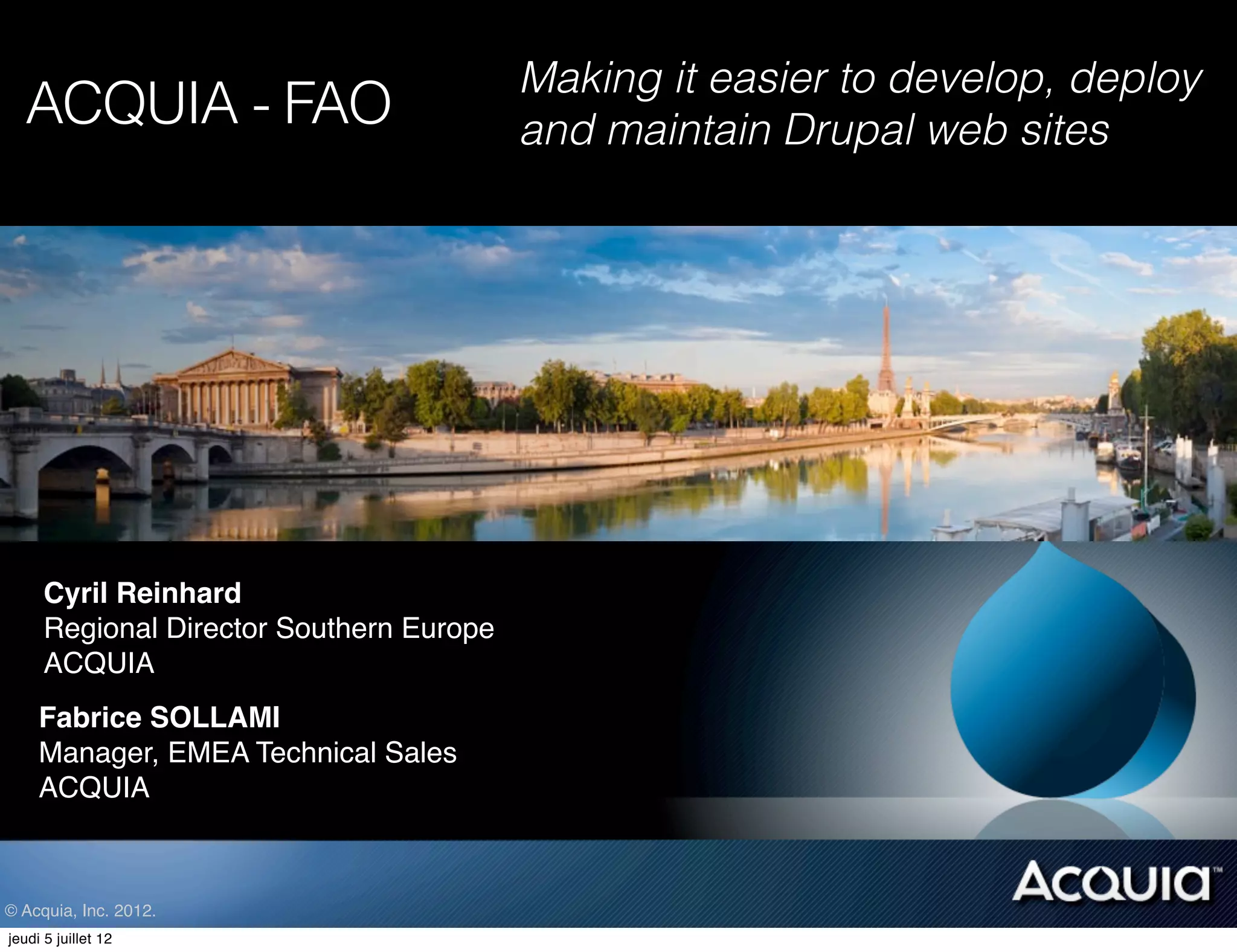 - Acquia offers professional services, training, hosting infrastructure, and tools to help organizations develop, deploy and maintain Drupal-powered websites and web applications.