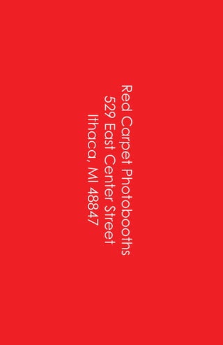 RedCarpetPhotobooths is a photo booth rental company located in Ithaca, MI that has been in the wedding photography business for over 60 years. They offer high quality, personalized photo strips from clean, modern and elegant photo booths staffed by professionals. Guests are sure to enjoy making memories with the photo booths that will last a lifetime. The document includes a reservation form for their photo booth services.
