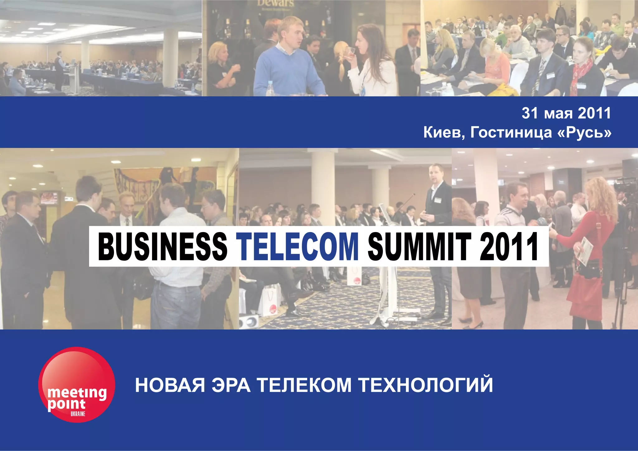 Business Telecom Summit 2011 в Киеве соберет ведущих экспертов и компании для обсуждения новейших телекоммуникационных технологий и решений. Мероприятие включает выступления, кейс-стадии и сетевые возможности, освещающее экономическую эффективность телекоммуникационных решений для бизнеса. Целевая аудитория состоит из операторов, системных интеграторов и производителей телекоммуникационного оборудования.