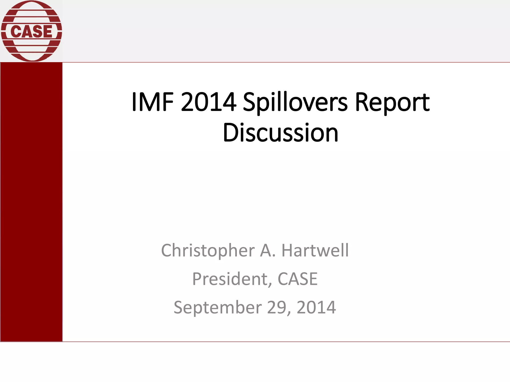 The IMF's 2014 Spillovers Report suggests that the world economy is experiencing lower spillover risks, though normalization of monetary policies remains a significant concern. It emphasizes the importance of understanding spillovers as a result of policy actions rather than exogenous shocks, and advocates for a focus on structural reforms to foster medium-term growth. The report calls for better integration of spillover analysis into country programs and a shift in emphasis from outcomes to the underlying policies that drive spillover effects.