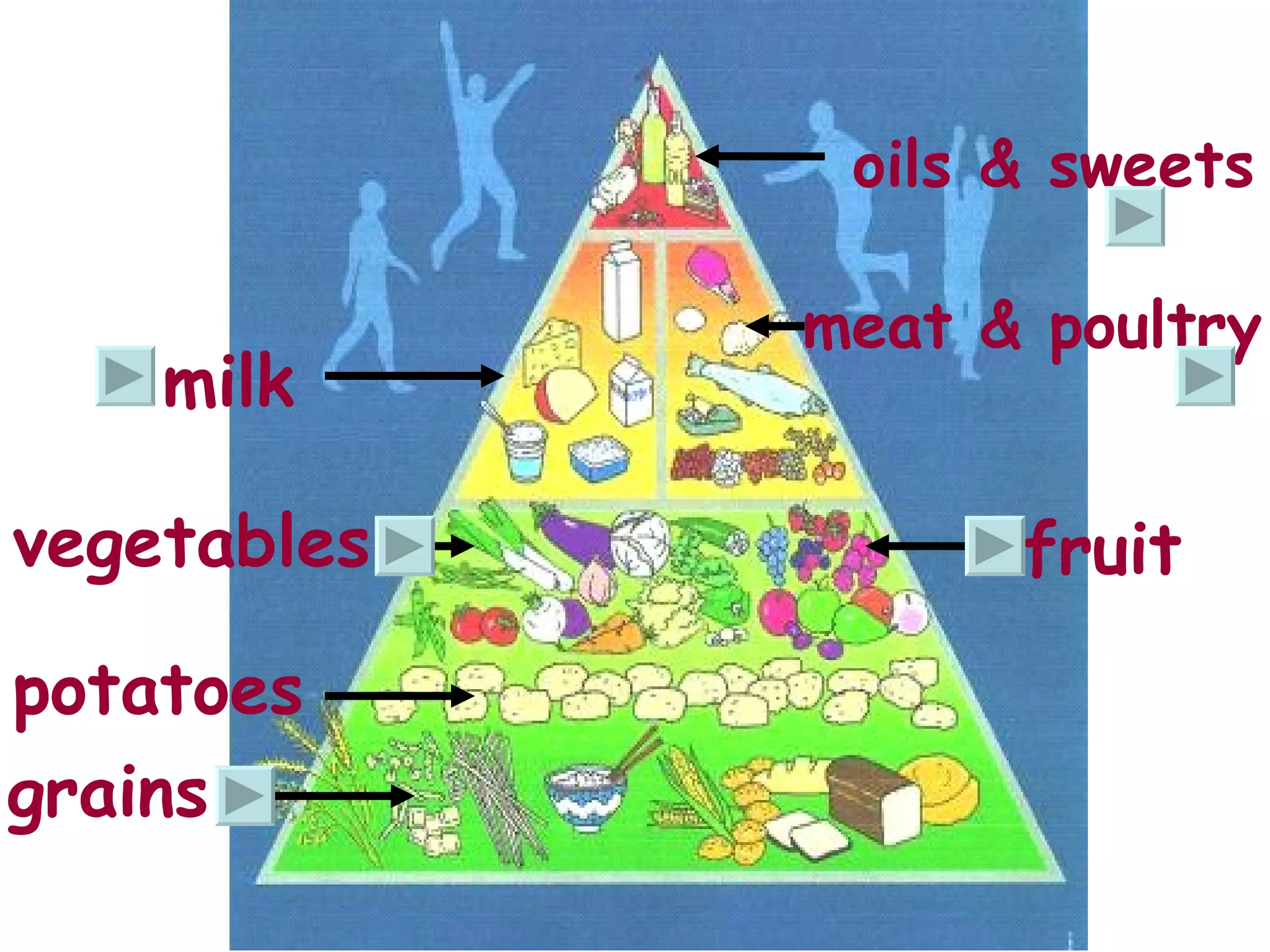 The document outlines the CINDI Food Pyramid which divides foods into 6 groups: grains, vegetables, fruit, milk, meat & poultry, and oils & sweets. It provides examples of foods that fall into each group and notes some key details about each group such as grains including potatoes and bread, vegetables including both raw and cooked options, and milk including fat-free and low-fat milk along with yogurt and cheese. The document also recommends choosing lean meat and fish while limiting oils, fats, and sweets.