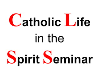 Ang dokumento ay isang pagsasanay tungkol sa buhay sa Espiritu Santo at ang kahulugan ng pagiging charismatic sa konteksto ng biblia. Tinatalakay nito ang pag-ibig ng Diyos, kaligtasan, bagong buhay, at pag-unlad ng espirituwal sa gitna ng mga mananampalataya. Ipinapakita rin nito ang mga kaloob at pagbabagong dulot ng Espiritu Santo sa buhay ng mga sumasampalataya kay Kristo.