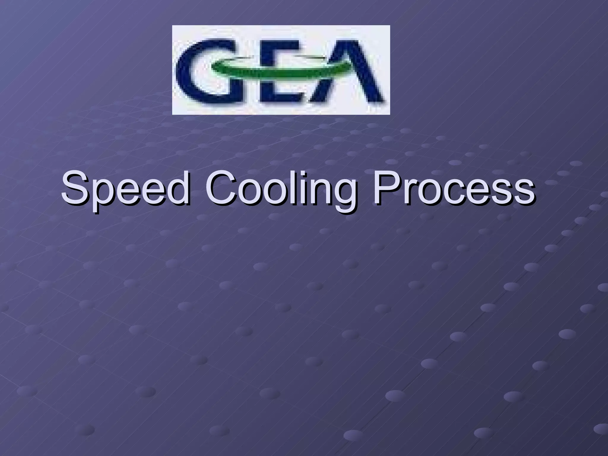 The document outlines an innovative speed cooling process that utilizes vibratory mechanics to create fine water droplets, which vaporize and absorb heat, effectively cooling the environment. Key advantages include reduced noise, higher efficiency, lower maintenance costs, and significant sales opportunities in various markets, including air conditioning and diesel motors. The document also discusses projected returns on investment and development timelines for the technology.