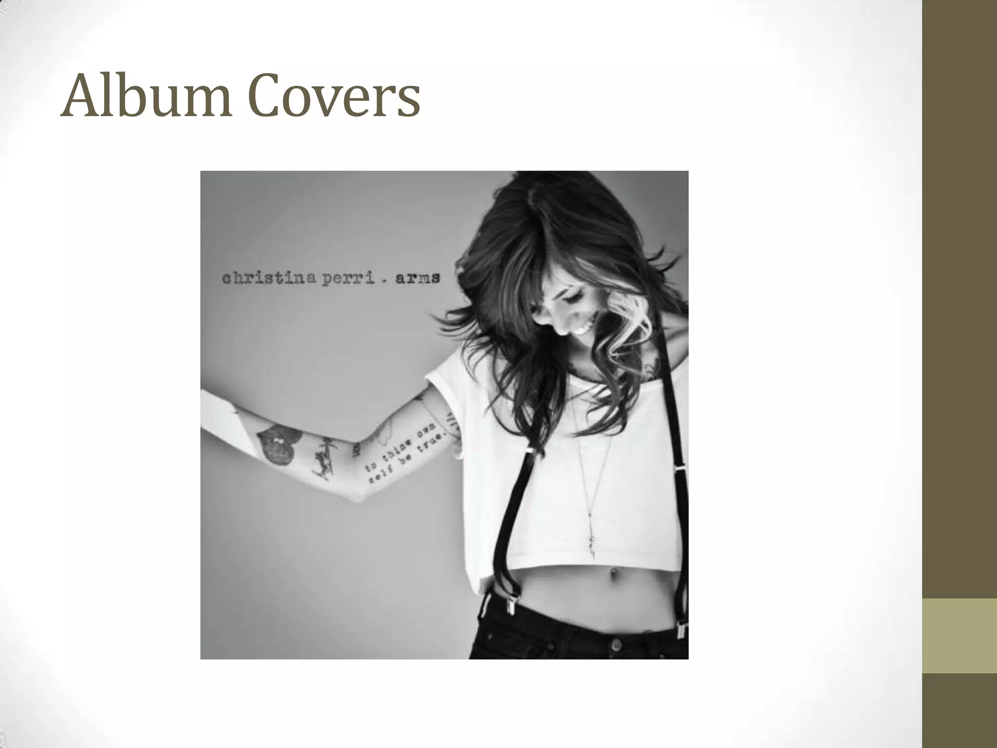 Christina Perri's album covers typically feature close-up shots of her face in black and white, which helps build her image and attract fans by emphasizing her attractive features. The monochrome theme also reflects the mood of her music. Her website prominently displays a large image of Perri and posts music videos to engage fans. Consistent fonts and color palettes are used across her album covers and ancillary products to tie her brand together. The artist is inspired to incorporate close-up shots, a color/font theme, and music videos into their own project to attract audiences and develop fan loyalty.